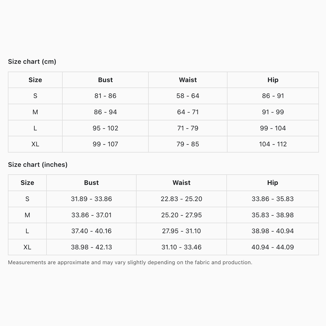 Measurements are approximate and may vary slightly depending on the fabric and production.