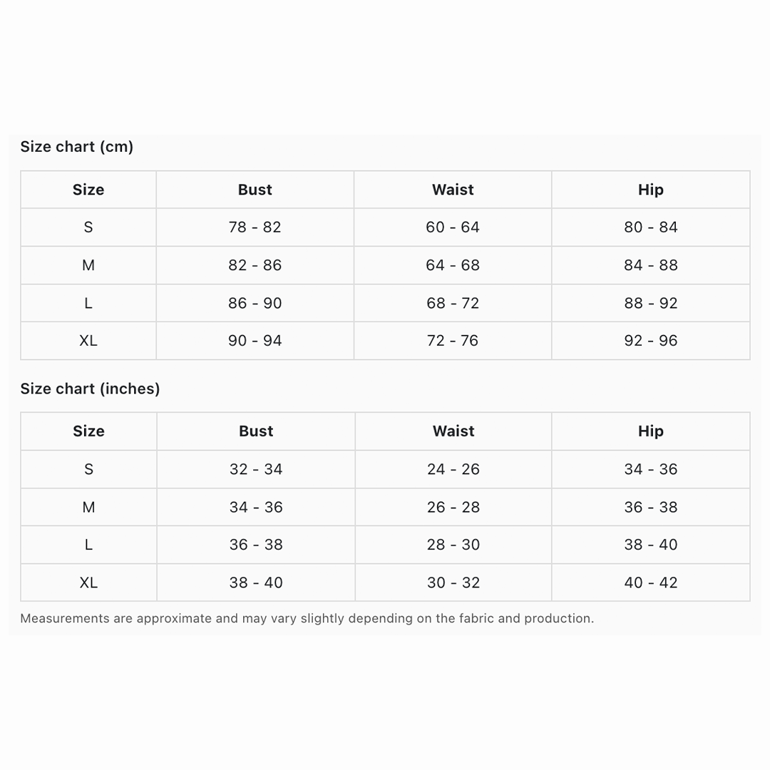 | XL | 90 - 94 | 72 - 76 | 92 - 96 |